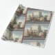 Esta imagen de la parte baja de Manhattan (alrededor de 1940) se ha estilizado artísticamente para parecerse a un cuadro, y el nombre agregado en una fuente retro para darle un aspecto de poster de viajes vintage. La imagen de Guay vintage de Nueva York en el patrón de repetición.
