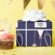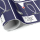 Creative nurse graduation gift wrap featuring navy hospital scrubs and stethoscope illustration. To personalize edit text to add name of nurse.