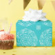 Esta mandala blanca se asienta sobre un fondo turquesa. Los colores son muy tranquilos y relajantes. Parte de la colección Dagrewi Mandala.