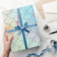 Mermaid Escala Azul Océano Papel de envolvimiento Hermosa sirena balanza papel de envoltura azul. Patrón de sirena en purpurina azul, rosa y falso.
