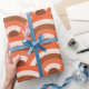 Añada un toque vintage a su envoltura de regalo con este elegante papel de envoltura que presenta un elegante patrón Seigaiha japonés de onda clásico en marrón y naranja diseñado en estilo retro.
