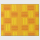 Este papel de envoltura tiene un diseño moderno de mediados de siglo que parece un tejido de líneas rojas y amarillas en un campo de oro.