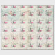 Papel envuelto con un bonito fondo de patrón vintage con rosas tenues y otros elementos decorativos. En la parte superior hay un ilustracion de la torre del eiffel y "Ooh La La" escrito a los lados. Una impresión de lápiz labial rosa caliente dejó al lado del famoso monumento con el texto xoxo! Bonjour escrito con un tipo de letra de estilo parisino.