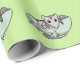 Cuatro grises y oposums rosados en y alrededor de una taza de té verde y rosada. Las miradas más grandes del oposum divertidas mientras que los oposums más pequeños juegan y escalan alrededor de la taza de té.