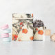 A delicate Chinoiserie-inspired seamless pattern wrapping paper featuring two graceful songbirds perched on blossoming plum branches. Rendered in a soft watercolor style with warm shades of orange, cream, and brown, this design evokes the serenity and charm of traditional East Asian art. This pattern brings an elegant balance of nature, artistry, and timeless beauty.