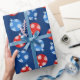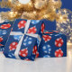 Papel De Regalo Ornamentos azules y rojos de navidad con copos de