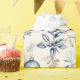 Los adornos navideños en bonitos tonos azules y beige claro están adornados con flores azules y doradas.