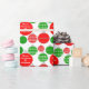 Este papel de envoltura presenta adornos de Navidad rojos y verdes sobre un fondo blanco. Haga clic en Personalizar esta plantilla para personalizar fácilmente este papel de ajuste con su nombre o el saludo de vacaciones personalizado.