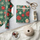 Ornamentos y flores de Navidad en un patrón festivo con colores verde, rojo y crema