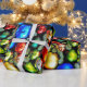 Muy bonito Los adornos de vacaciones en azul, rojo, verde, plata y oro descansan entre las ramas de Pine Tree.