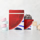 Esta imagen retrata bolas de Navidad en rojo, azul y verde. Se ven cintas y estrellas en blanco, azul y rojo. Se agregó un fondo azul. Se agregó un purpurina a este diseño. Este Navidad de papel de envoltura está disponible en varios estilos y tamaños.
