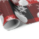 Balón de adorno de Navidad blanca con un patrón de copo de nieve sobre fondo de manto de búfalo rojo y negro. Reverso