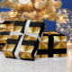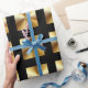 El papel con clase del papel de regalo en un oro fresco y un diseño negro que incluya la mirada metálica del oro ajusta el modelo que pone en contraste agradable con el fondo negro. El uso como diseño exclusivo del papel de embalaje para ese cumpleaños u ocasión así que usted especiales puede envolver sus regalos en estilo.