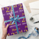 Este diseño de papel envolvente incluye un mensaje como "¡El vigésimo segundo cumpleaños de Stephen!", mientras que el "vigésimo segundo" tiene un aspecto de color falso/imitación dorado. El nombre se puede personalizar y el fondo es morado. Tal vez podría ser usado cuando se envuelven regalos para el 22 cumpleaños de alguien. [~Z0000182]