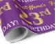 Este diseño de papel envolvente incluye un mensaje como "¡El vigésimo tercer cumpleaños!", en el que el "vigésimo tercer" tiene un aspecto de color falso/imitación dorado. El nombre se puede personalizar y el fondo es morado. Tal vez podría ser usado cuando se envuelven regalos para el 23 cumpleaños de alguien. [~Z0000182]