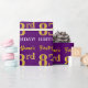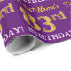 Este diseño de papel envolvente incluye un mensaje como "¡El 83 cumpleaños del primer nombre!", y el "83" tiene un aspecto de color falso/imitación dorado. El nombre se puede personalizar y el fondo es morado. Tal vez podría ser usado cuando se le dan regalos para el cumpleaños ochenta y tres de alguien. [~Z0000182]