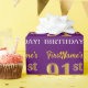 Este diseño de papel envolvente incluye un mensaje como "¡El cumpleaños 91 del FirstName!", mientras que el "91" tiene un aspecto de color falso/imitación de oro. El nombre se puede personalizar y el fondo es morado. Tal vez podría ser usado cuando se envuelven regalos para el cumpleaños noventa de alguien. [~Z0000182]