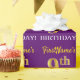 Este diseño de papel envolvente incluye un mensaje como "¡Noveno cumpleaños de FirstName!", y el "noveno" tiene una apariencia de color falsa/imitación dorada. El nombre se puede personalizar y el fondo es morado. Tal vez podría ser usado cuando se envuelven regalos para el noveno cumpleaños de alguien. [~Z0000182]