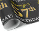Este diseño de papel envolvente incluye un mensaje como "¡57º CUMPLEAÑOS de Jennifer!", y el "57º" tiene un aspecto de color falso/imitación dorado. El nombre se puede personalizar y el fondo es negro de color. Tal vez podría ser usado cuando se envuelven regalos para el 57 cumpleaños de alguien. [~Z0000177]