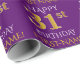 Este diseño de papel envolvente presenta un mensaje como "FELIZ 31º CUMPLEAÑOS", en el que el "31º" tiene una apariencia de imitación de oro. También tiene un nombre que se puede personalizar y un fondo de color morado. Tal vez podría ser usado cuando se envuelven regalos para el primer cumpleaños de alguien. [~Z0000134]