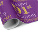 Papel De Regalo Oro púrpura, falso "FELIZ 91 cumpleaños"