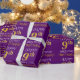 Este diseño de papel envolvente presenta un mensaje como "FELIZ 9° CUMPLEAÑOS", con el "9°" en apariencia de oro falso/imitación. También tiene un nombre que se puede personalizar y un fondo de color morado. Tal vez podría ser usado cuando se envuelven regalos para el noveno cumpleaños de alguien. [~Z0000134]