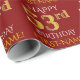Este diseño de papel envolvente presenta un mensaje como "FELIZ 53º CUMPLEAÑOS", en el que el "53º" tiene una apariencia de imitación de oro. También incluye un nombre personalizado y un fondo de color rojo. Tal vez podría usarse cuando se envuelven regalos para el cincuenta y tercer cumpleaños de alguien. [~Z0000131]