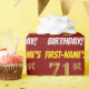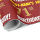 Este diseño de papel envolvente incluye un mensaje como "¡CUMPLEAÑOS 71 DE PRIMER NOMBRE!", en el que el "71" tiene un aspecto de color falso/imitación de oro, y con el nombre y el "CUMPLEAÑOS" en un tipo de letra divertido y audaz. El nombre se puede personalizar y el fondo es de color rojo. El envolvimiento de papel como este podría ser usado cuando se le dan regalos de cumpleaños a alguien en celebración de su cumpleaños setenta y uno. [~Z0000204]