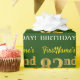 Este diseño de papel envolvente incluye un mensaje como "¡El 82º CUMPLEAÑOS de FirstName!", y el "82º" tiene un aspecto de color falso/imitación dorado. El nombre se puede personalizar y el fondo es de color verde. Tal vez podría ser usado cuando se le dan regalos para el cumpleaños ochenta y dos de alguien. [~Z0000179]