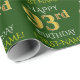Este diseño de papel envolvente presenta un mensaje como "FELIZ 93º CUMPLEAÑOS", con el "93º" en apariencia de oro falso/imitación. También incluye un nombre que se puede personalizar y un fondo de color verde. Tal vez podría usarse cuando se envuelven regalos para los noventa y tres años de alguien. [~Z0000132]