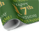 Este diseño de papel envolvente presenta un mensaje como "FELIZ CUMPLEAÑOS 17", con el "17" en apariencia de oro falso/imitación. También cuenta con un nombre que se puede personalizar y un fondo de color verde. Tal vez podría usarse cuando se envuelven regalos para el decimoséptimo cumpleaños de alguien. [~Z0000132]