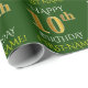 Este diseño de papel envolvente presenta un mensaje como "FELIZ DÍA 10", con el "décimo" con una apariencia de imitación de oro. También cuenta con un nombre personalizado y un fondo de color verde. Tal vez podría usarse cuando se envuelven regalos para el décimo cumpleaños de alguien. [~Z0000132]