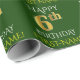 Este diseño de papel envolvente presenta un mensaje como "FELIZ SEIS CUMPLEAÑOS", con el "6º" en apariencia de oro falso/imitación. También cuenta con un nombre que se puede personalizar y un fondo de color verde. Tal vez podría ser usado cuando se envuelven regalos para el sexto cumpleaños de alguien. [~Z0000132]