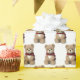 Un lindo oso de peluche marrón que lleva una bufanda roja oscura sobre fondo blanco