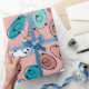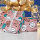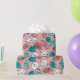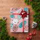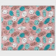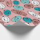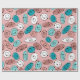 Este papel de envoltura tiene un diseño atómico moderno de mediados de siglo de contornos ovales con pequeños círculos sobre ellos y ovales de color sólido dentro de ellos.