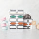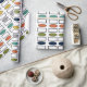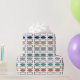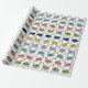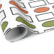 Este papel envolvente tiene un diseño moderno de mediados de siglo de repeticiones de rectángulos y ovales en colores retro.