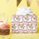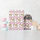 Papel de envoltura suave de color rosa con ovejas y corderos blancos.