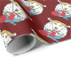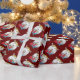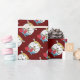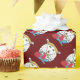 La oveja de punto muestra un tejido teñido de un rollo de lana. Sujeta agujas tejiendo sorprendentemente bien considerando ser una oveja y todo. Para tejer ventiladores.