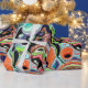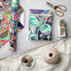 Envoltura de regalo azul, rojo, verde limón, marrón, morado, verde azulado y turquesa.