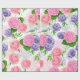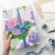 Patrón acuático con flores y teta azul pintado con acuarelas.