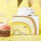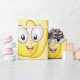 Una rebanada de pan con mantequilla que tiene la cara, por lo tanto, pan de mantequilla. Este diseño se ve realmente efectivo en este papel de ajuste