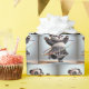 Una alegre panda con un arco y flores gira un colorido aro de hula de arcoiris mientras lleva una pequeña falda plisada y zapatos de silla.