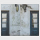 PAPEL DE REGALO PANEL DE PUERTA DE MADERA AZUL EN EDIFICIO BLANCO