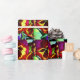 con obras de arte originales de la pintura acuarela de Sacha Grossel de flores moradas, índigo, rojas y amarillas contra el follaje verde. Este diseño de inspiración botánica floral, colorido y luminoso, está muy enfocado y presenta colores diferentes que le dan un ambiente vibrante a esta flor que se encuentra en un clima fresco.