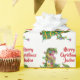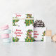Papel de envolvimiento personalizado de Dinosaurio Santa Hat de Feliz Navidad.