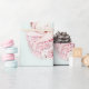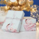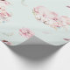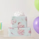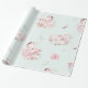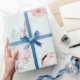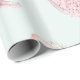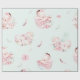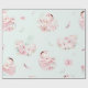 Papel de regalo para baby shower de niña con adorables bebés de acuarela y plumas sobre un fondo azul turquesa.