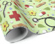 Papel de regalo para fiesta de enfermeras creativas con diseño de suministros de atención médica y patrón de flores.
