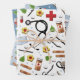 Papel de regalo con temática médica creativa con suministros de enfermería y flores para tu enfermera favorita.