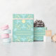 Papel de regalo con azulejos caprichosos. Este diseño incluye elementos de azul, amarillo, un fondo de azulejos, espirales y bordes inspirados en el diseño victoriano. Haga clic en personalizar para elegir cualquier color de fondo si lo desea.