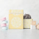 Esta mandala blanca se sienta sobre un fondo amarillo claro. Los colores son alegres y tranquilos. Parte de la colección Kylgh Mandala.